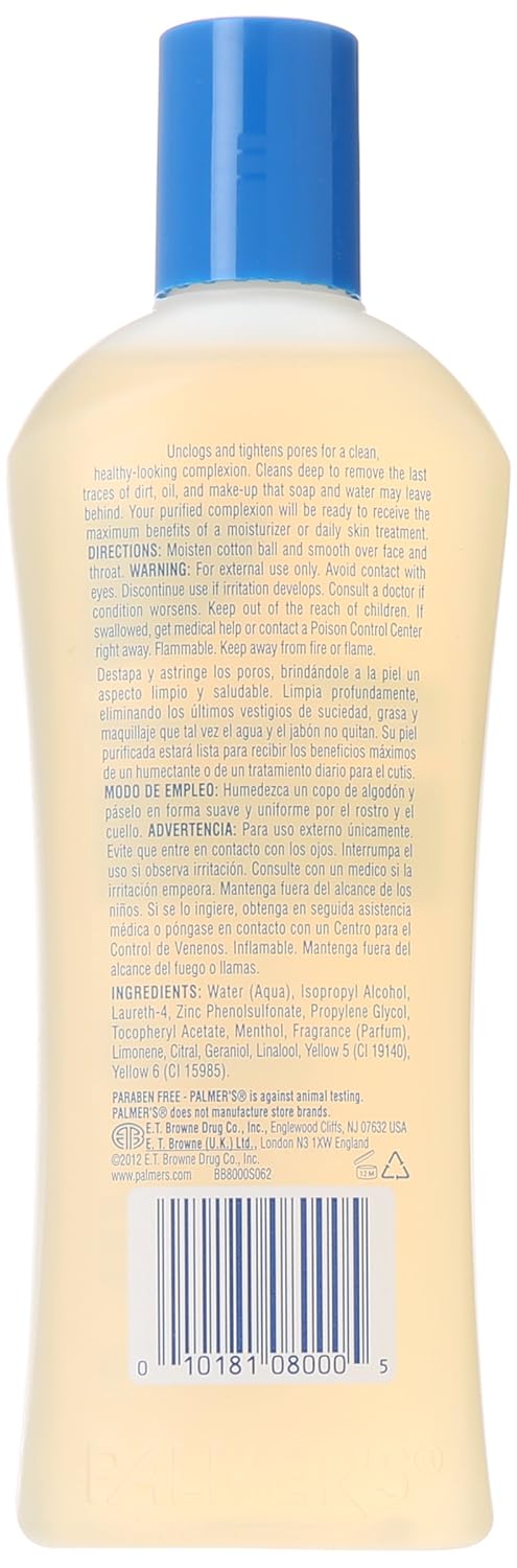 - Facial Cleanser: Palmer’s Skin Success Deep Cleansing Facial Astringent helps unclog pores and removes dirt, excess oil and make-up, while refreshing, toning, and revitalizing skin