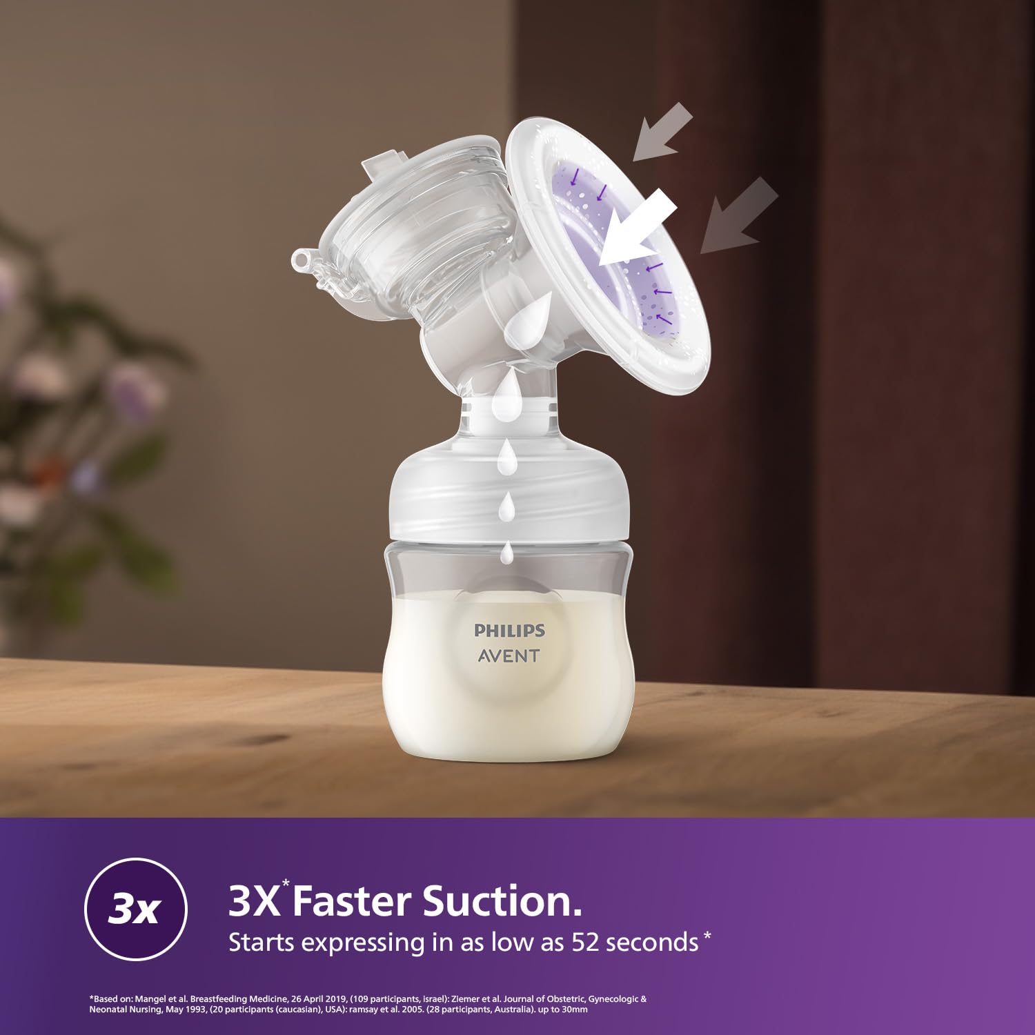 Express more milk in less time* with a flange that stimulates the breast to express milk just like baby. It seamlessly adjusts from stimulation mode to expression mode’, and applies just the right amount of nipple stimulation and suction for maximum milk flow. Based on milk flow initiation time (time to Milk Ejection Reflex – MER) results.*