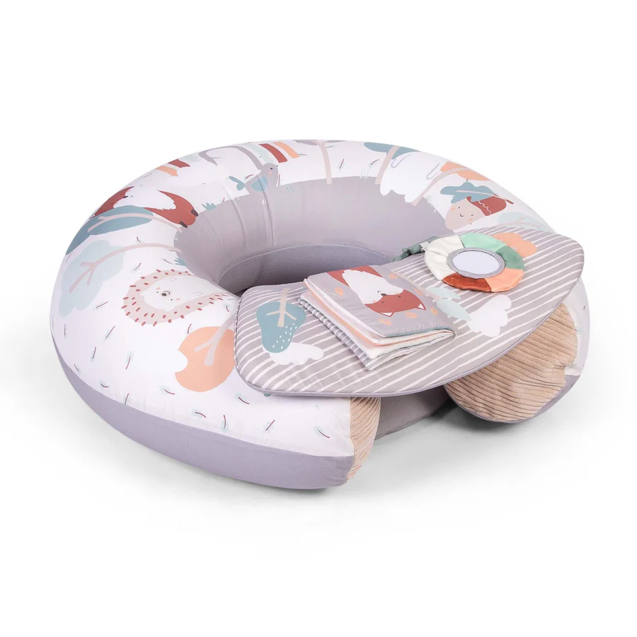 - Detachable front tray with interactive play toys