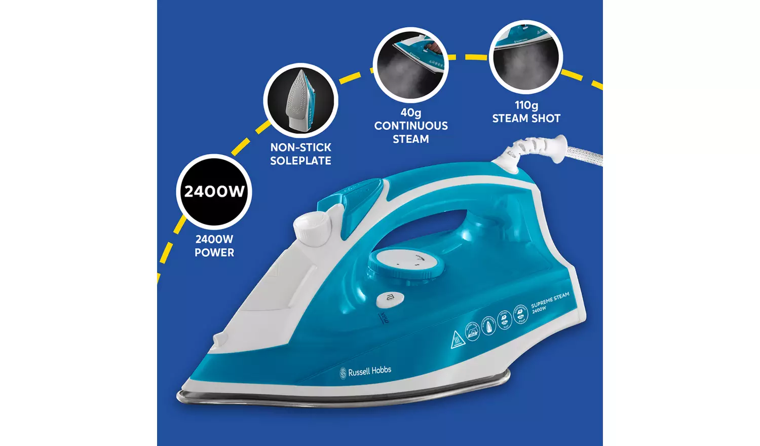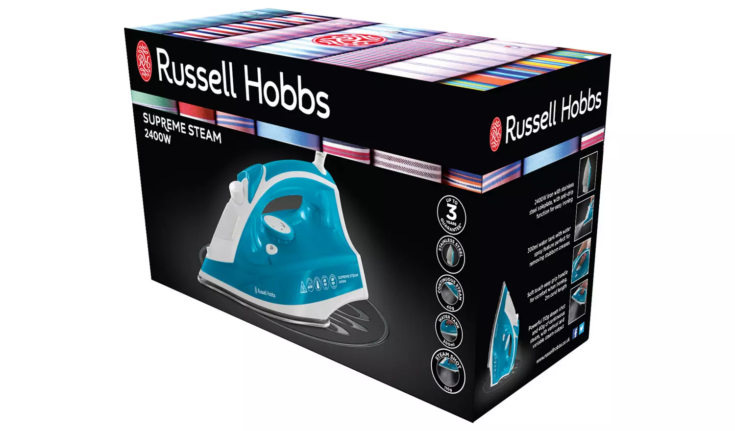 Ironing whether you love it or hate it, speed up the process with the Supreme Steam Iron from Russell Hobbs. With a combination of innovative features, this iron has been designed to help whiz through large or small ironing piles easily, helping you get the job done faster.