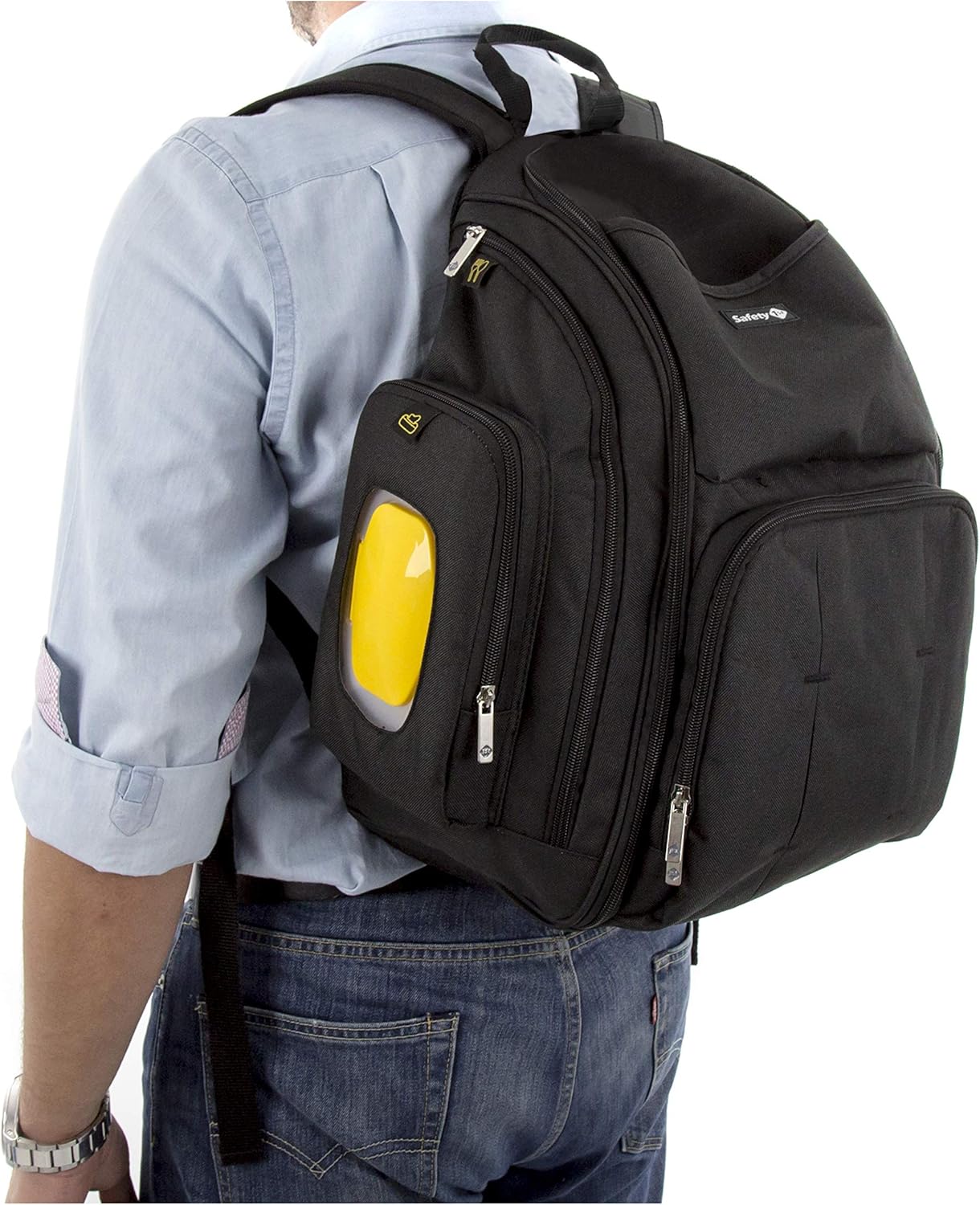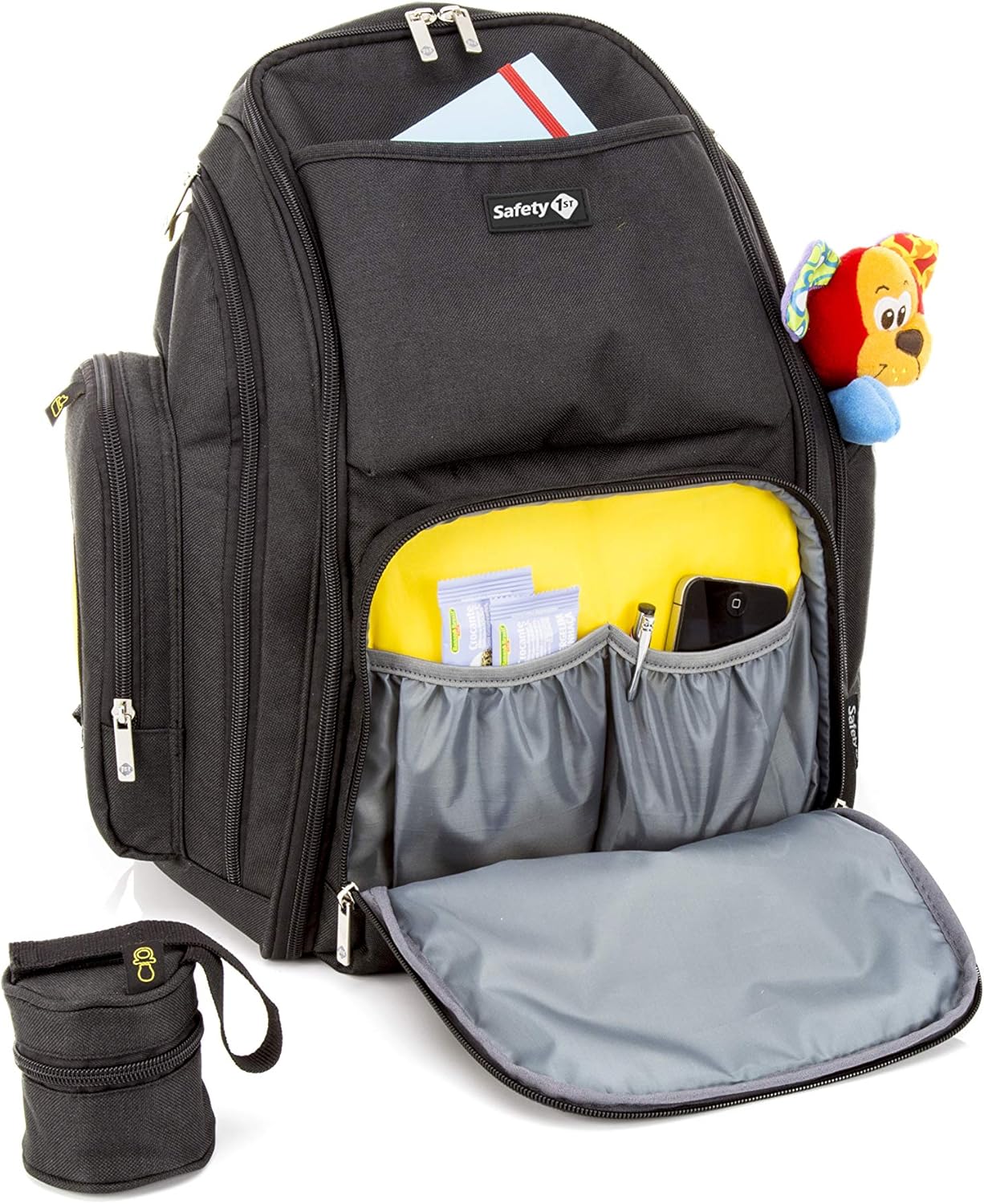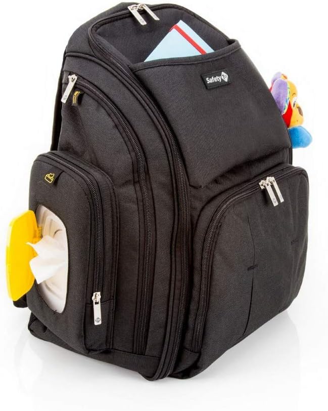 - Safety 1st back pack has padded, adjustable shoulder straps and full support back panel for comfortable hand-free carrying