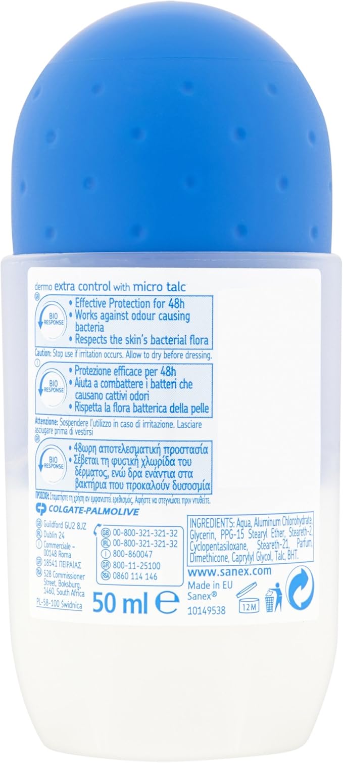 Sanex Dermo Extra Control Roll-On Antiperspirant Deodorant (50ml).
