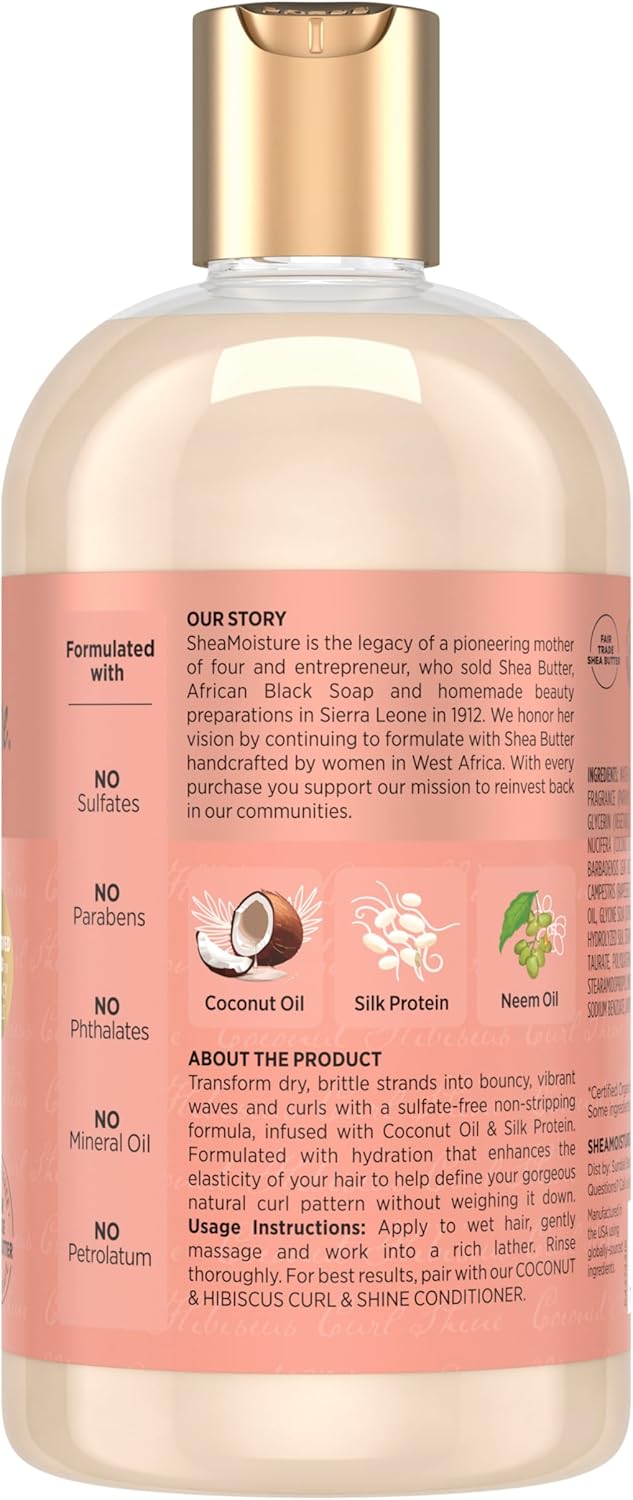 - The SheaMoisture Coconut Hibiscus Curl & Shine Shampoo gently cleanses without stripping essential moisture