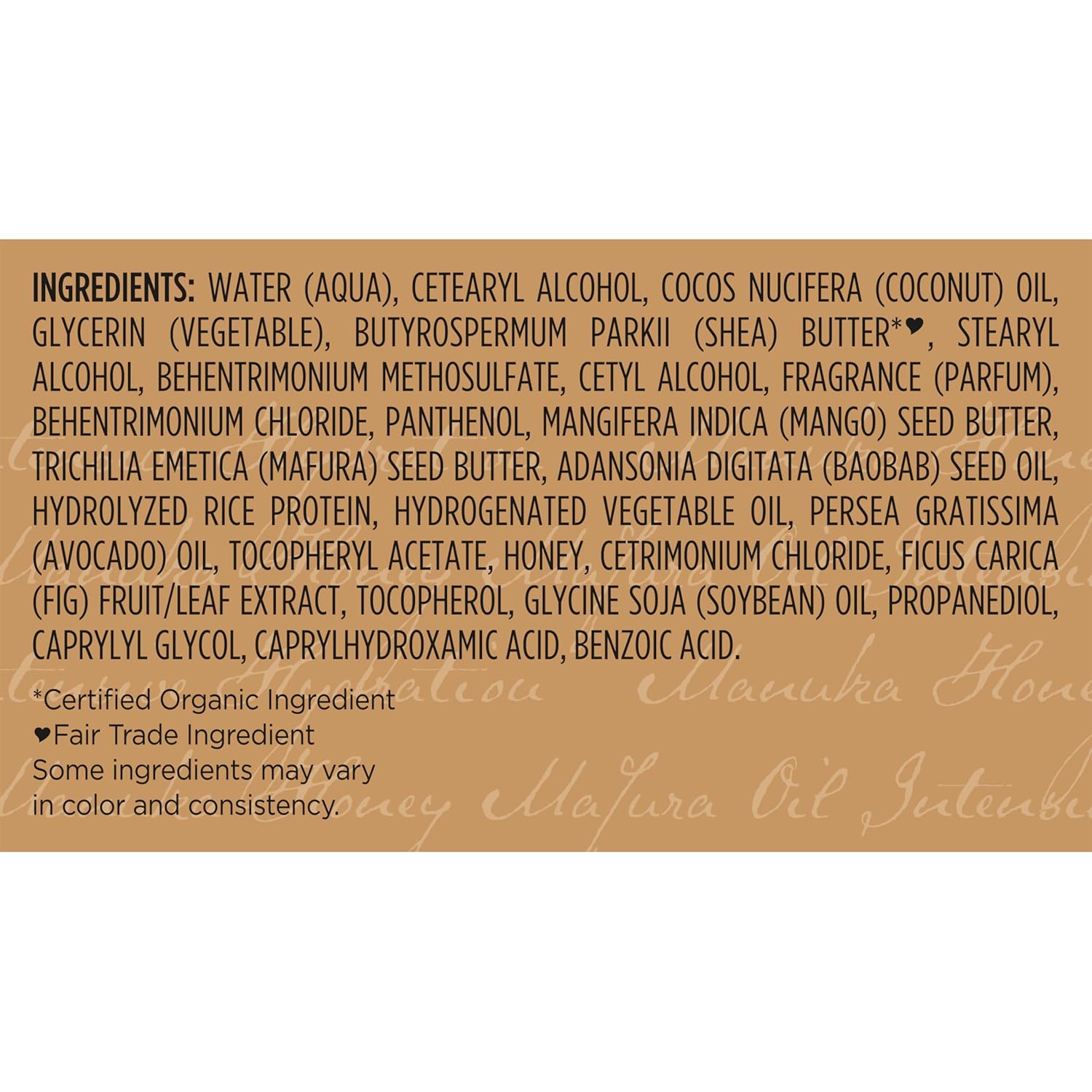 - This deep conditioning hair treatment masque blends certified organic Shea Butter, Honey, Mafura and Baobab Oils with antioxidant-rich African Rock Fig to restore and lock in moisture