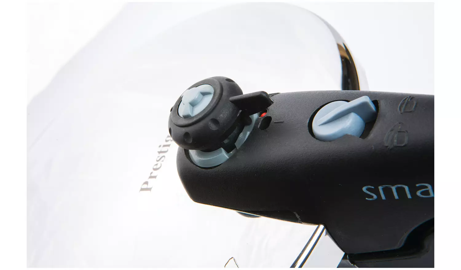 - Directional pressure indicator ensures safe release of steam away from you.