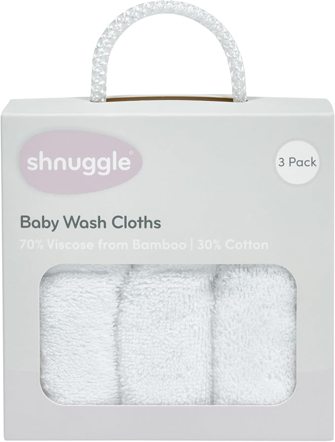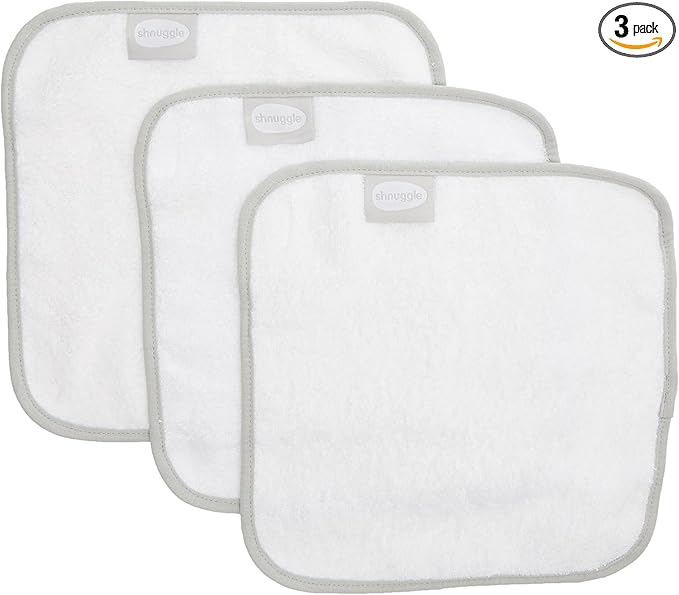 - 3 Pack of Shnuggle Baby Washcloths made from natural bamboo and cotton. Chemical free and great for sensitive skin