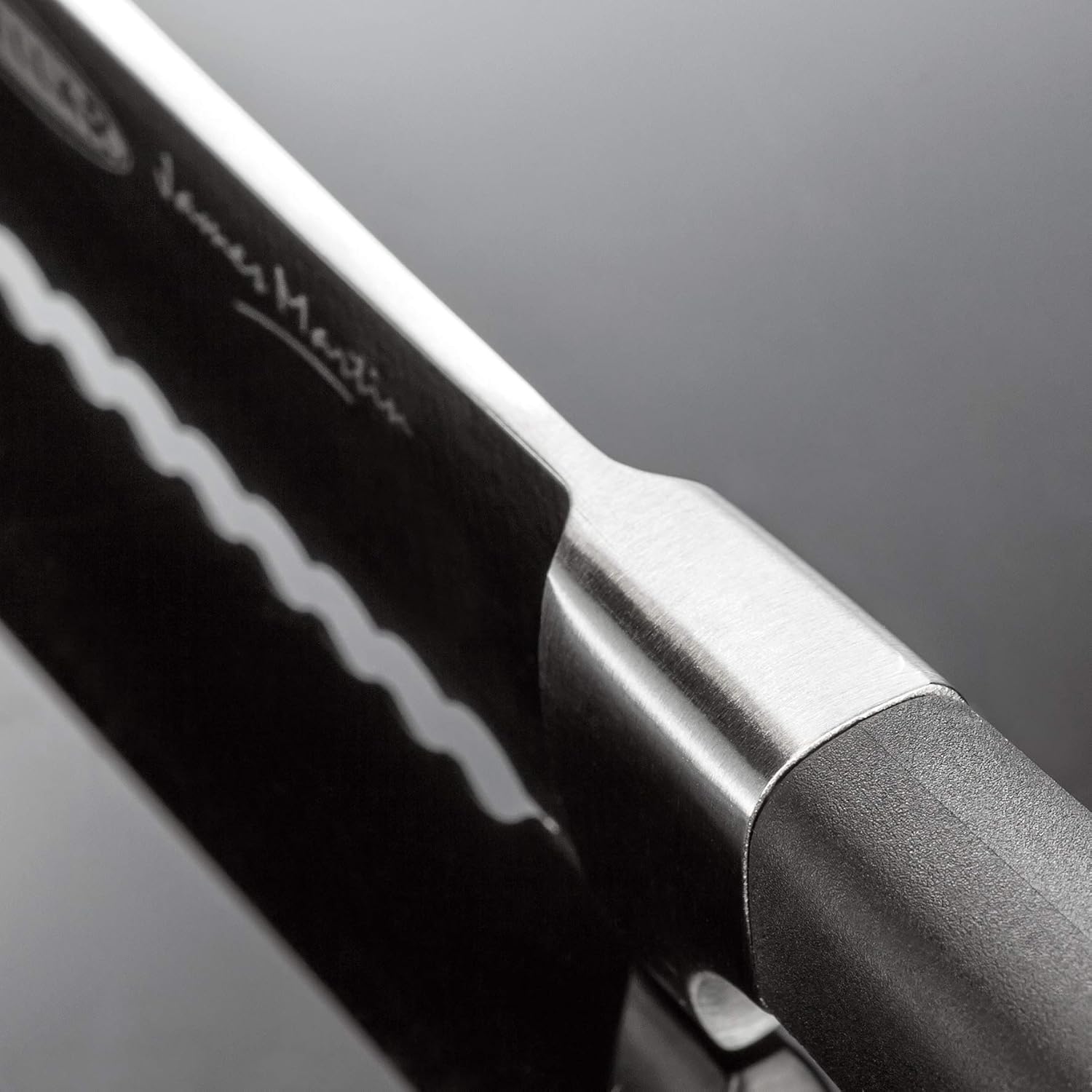 - Handle: Moulded, anti-slip black handle designed in collaboration with chef James Martin for a secure grip.