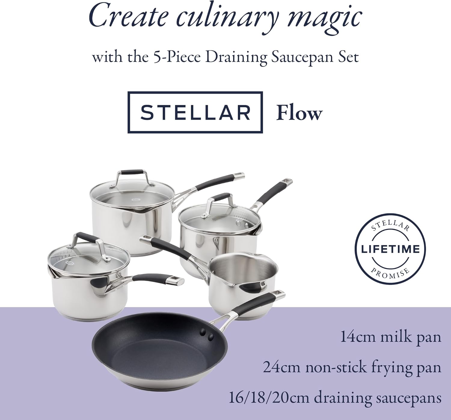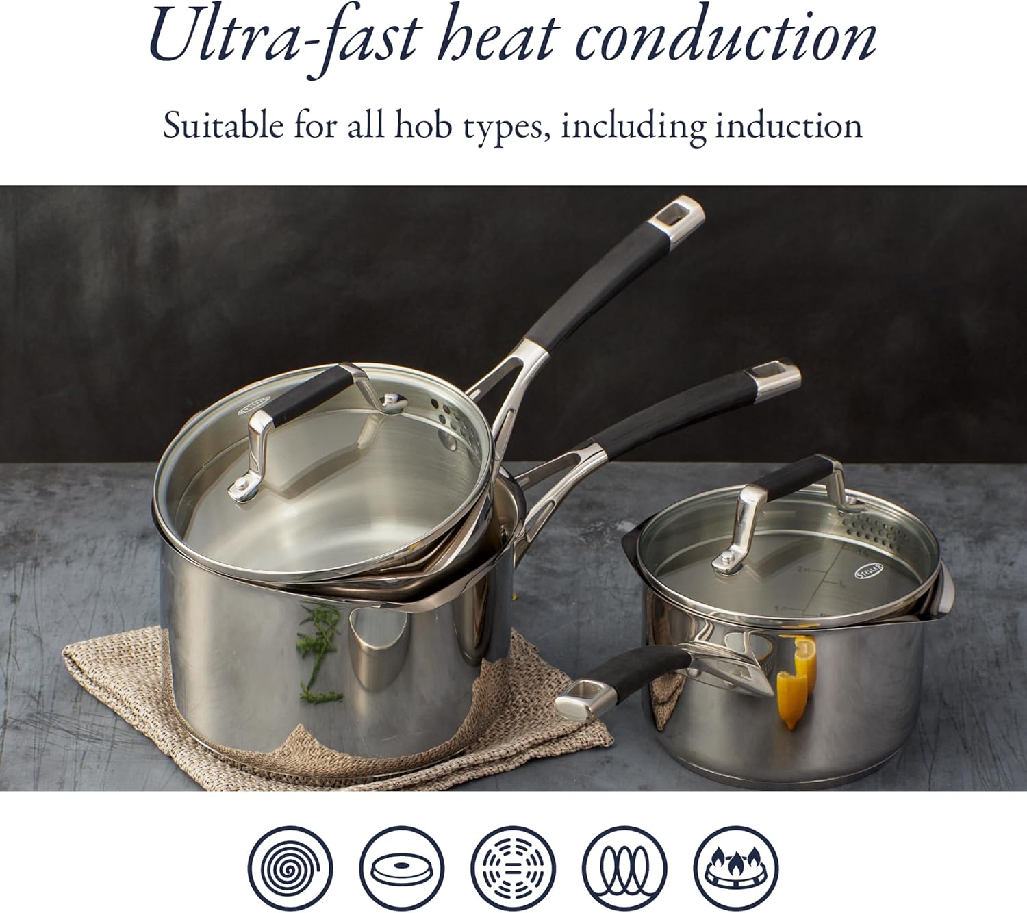 Stellar Profile S7C4D 5-Piece Draining Saucepan Set