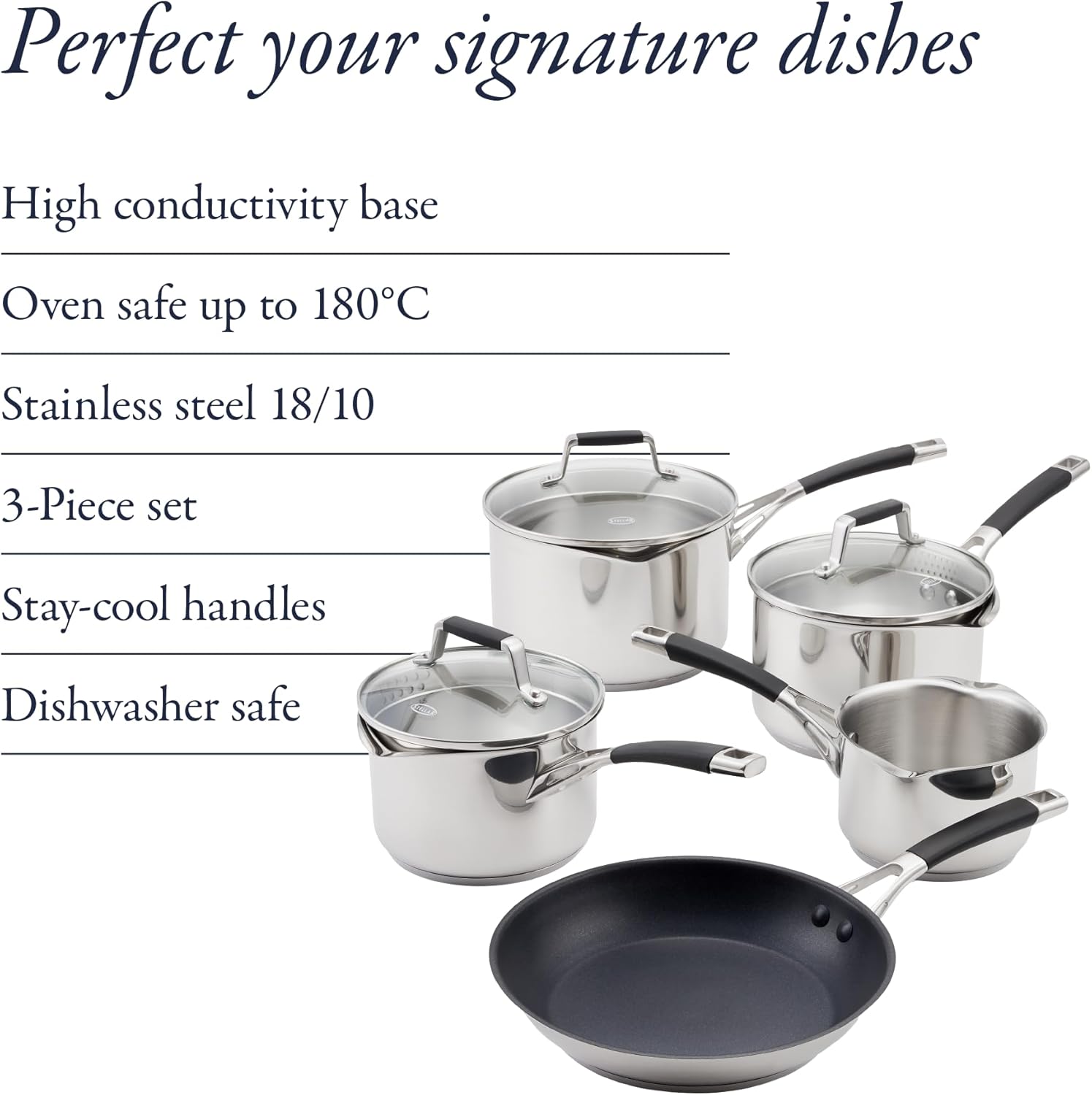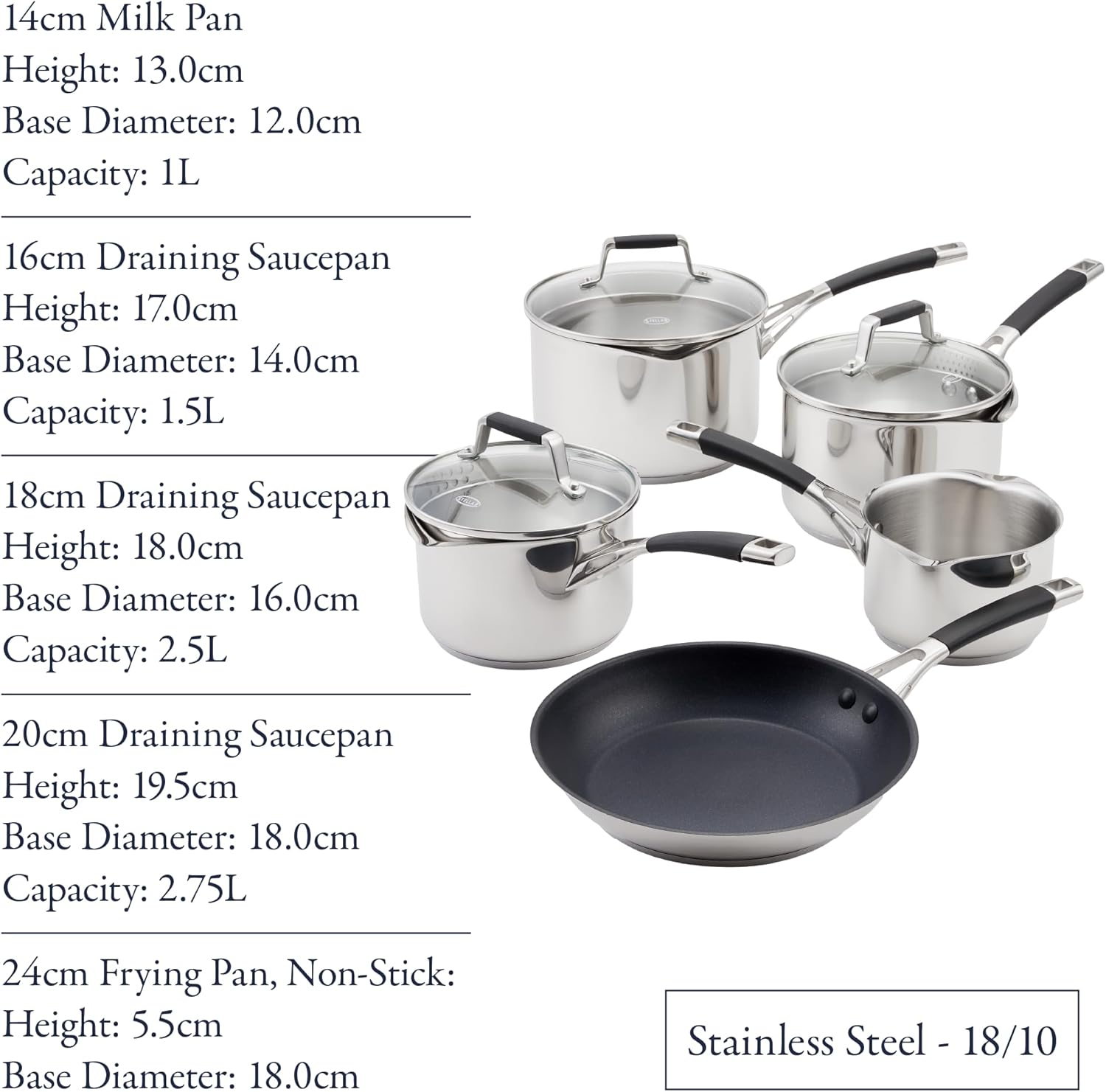 - Precision Cooking: Includes internal measuring guides (litre and pint markings) inside the saucepans.