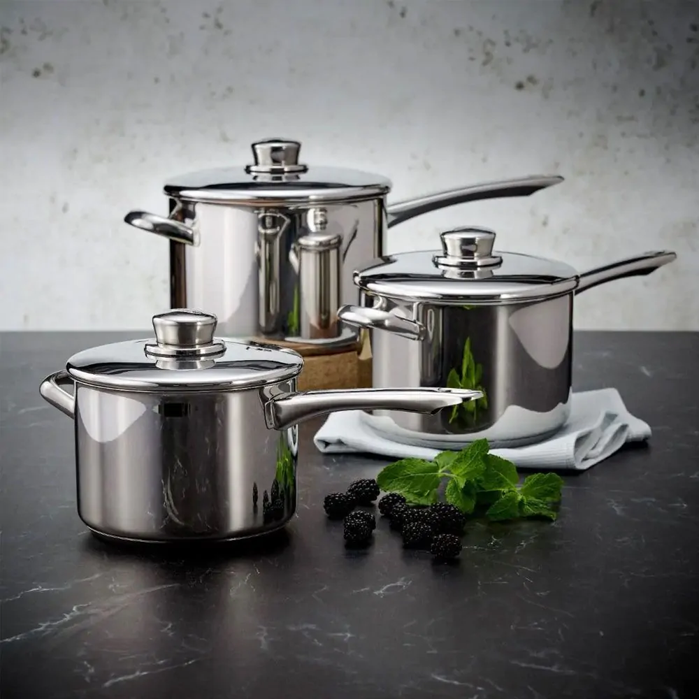 - Set Composition: Includes three saucepans in standard sizes: 16cm, 18cm, and 20cm.
