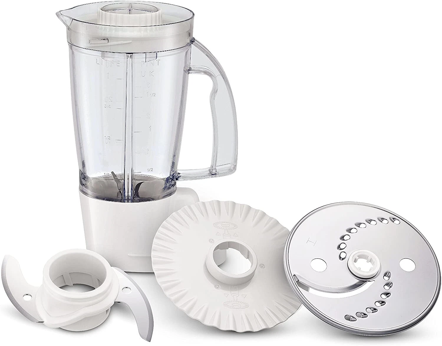 - With chopping blade, coarse slicing/grating disc and emulsifying disc, plus neat in-bowl storage box
