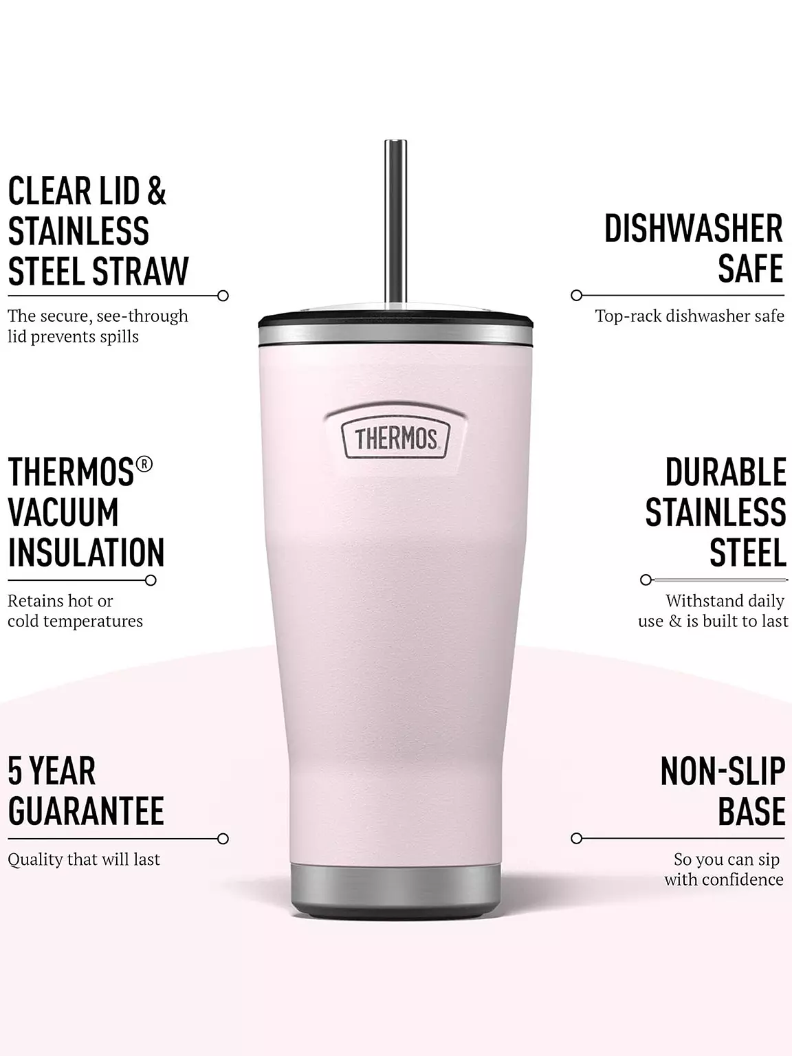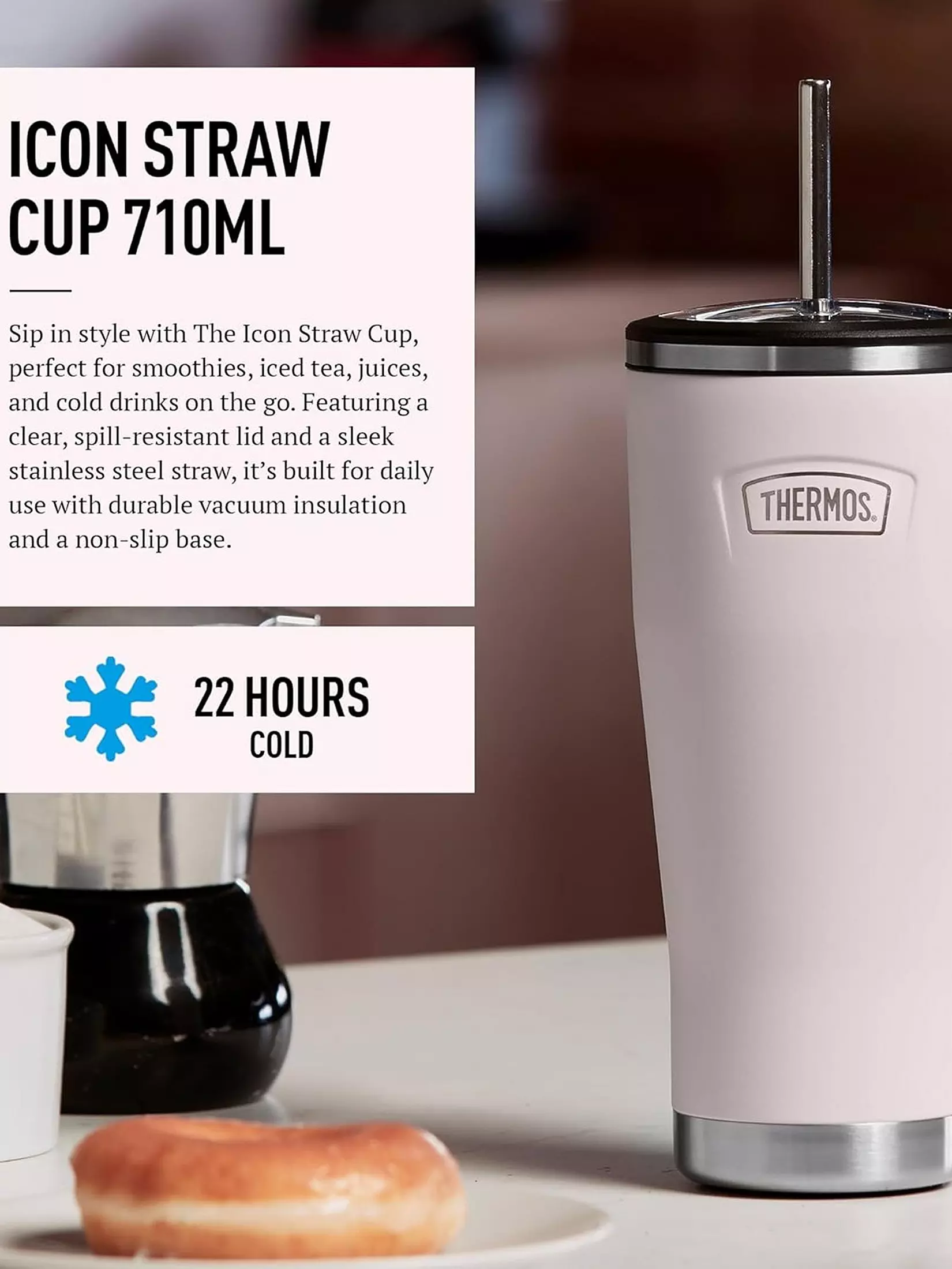Thermos Icon Cold Cup + Straw Pastel 710ML Pink