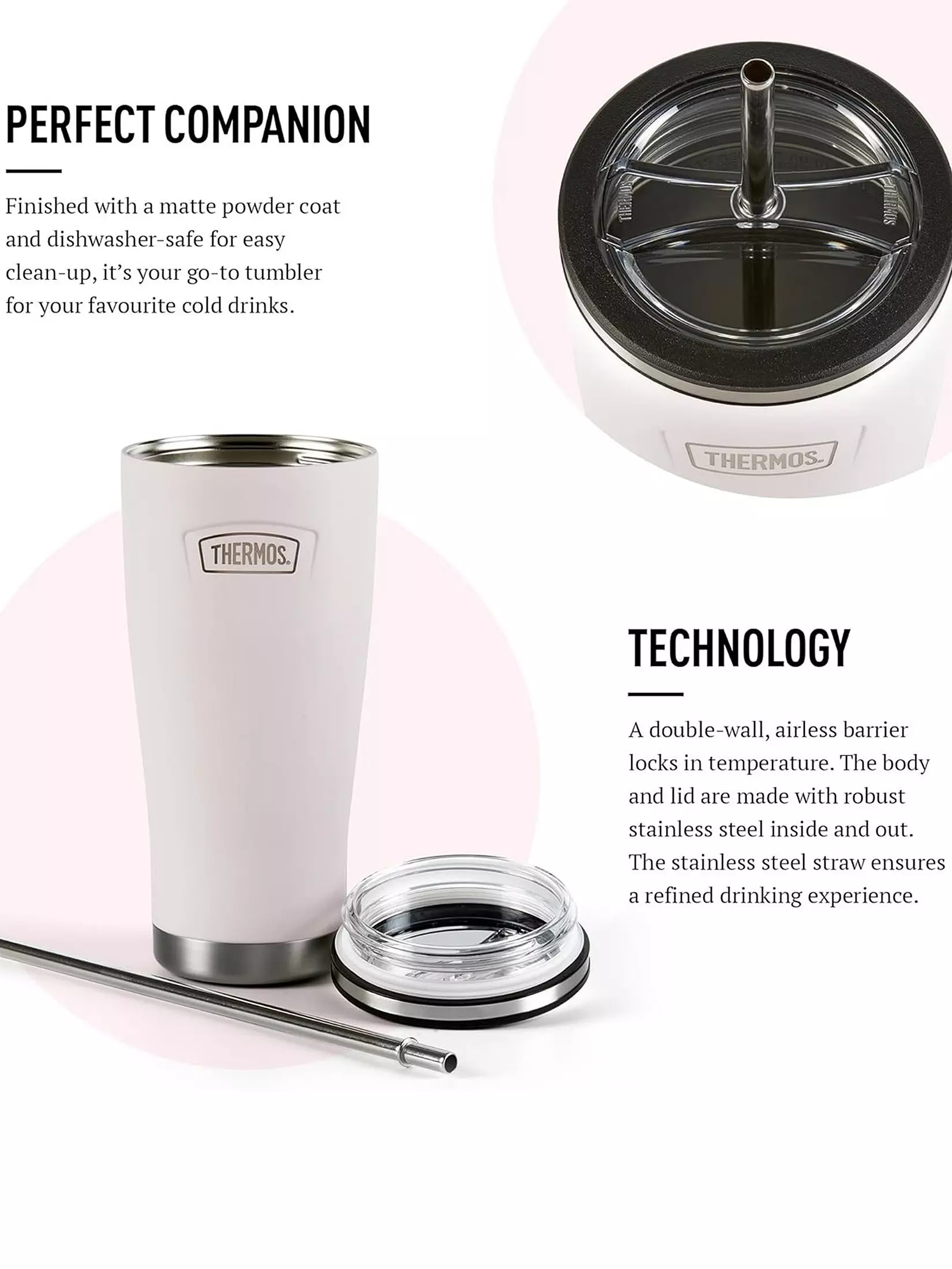 Sip in style with The Icon Straw Cup, perfect for smoothies, iced tea, juices, and cold drinks on the go. Featuring a clear, spill-resistant lid and a sleek stainless steel straw, it’s built for daily use with durable vacuum insulation and a non-slip base. Finished with a matte powder coat and dishwasher-safe for easy clean-up, it’s your go-to tumbler for your favourite cold drinks.
