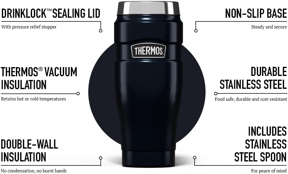 - Temperature Control – Thermos vacuum insulation keeps your coffee cup contents hot for 7 hours or cold for 18, maintaining optimal temperature for your beverages throughout the day