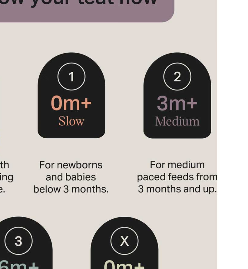 - Age Recommendation: Slow flow teats are typically recommended for babies aged 0+ months. For babies 3 months+, the brand suggests switching to a medium flow teat, or a vari-flow teat which allows the baby to control the pace.