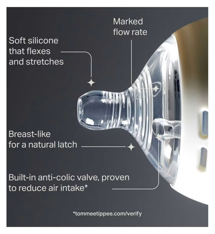 - Material: The teats are made from soft, breast-like silicone that flexes and stretches to mimic natural movement, encouraging a natural latch and easing the transition between breast and bottle feeding.