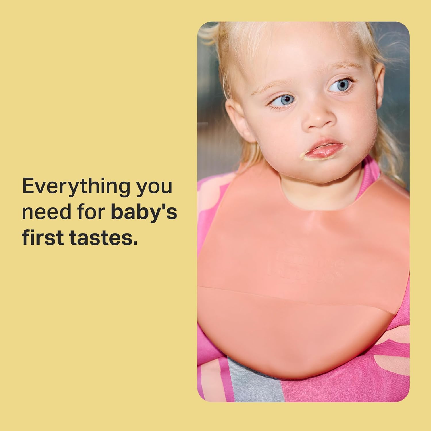 - 1 x Roll ‘n’ Go Bib: This soft silicone bib has a crumb catcher to collect spills and dropped food, helping to keep clothes clean. It is lightweight, easy to clean, and can be rolled up for storage.