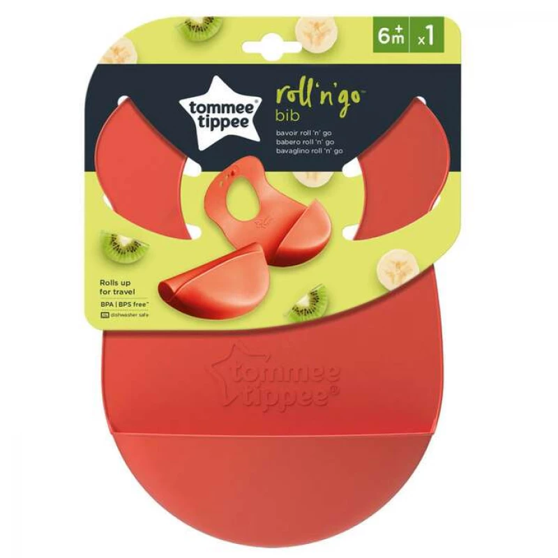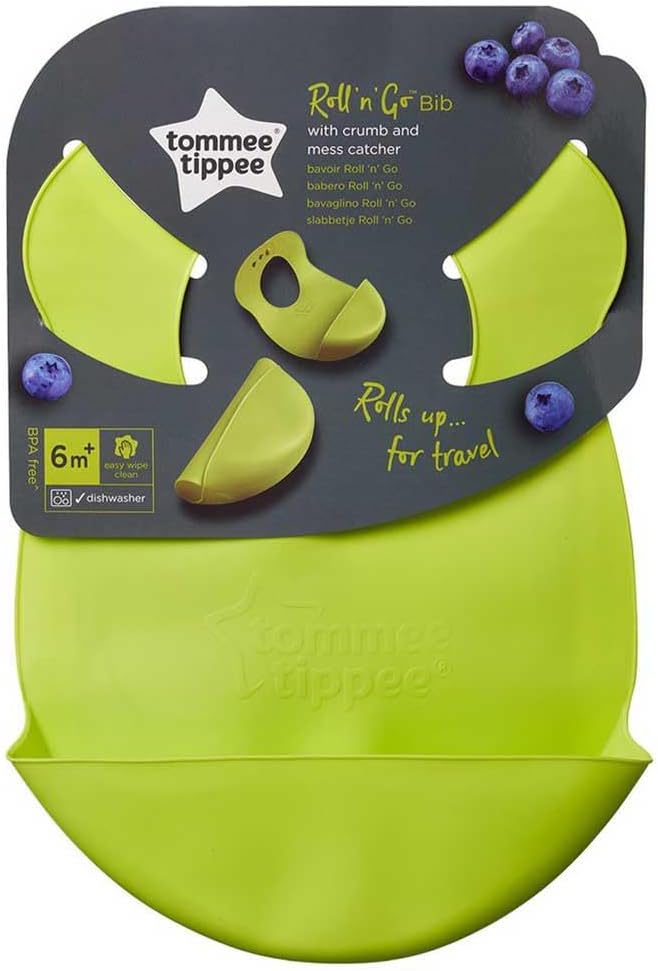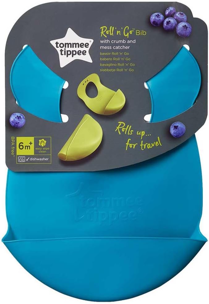 ommee Tippee Roll ‘n’ Go bib is a popular, practical feeding accessory made from soft, flexible, and waterproof material that includes a built-in crumb catcher for less mess. It is designed to roll up for easy storage and portability, making it ideal for use at home or while traveling.