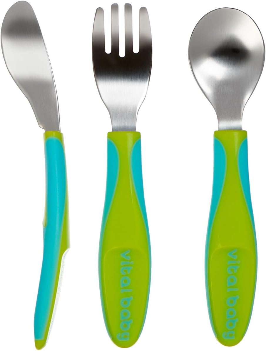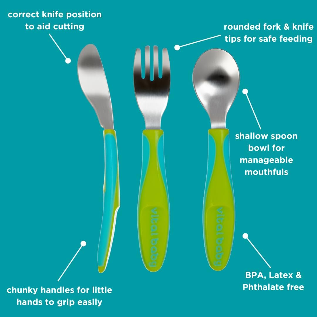 Vital Baby Nourish Chunky Cutlery Set in the “Pop” (Blue/Green)
