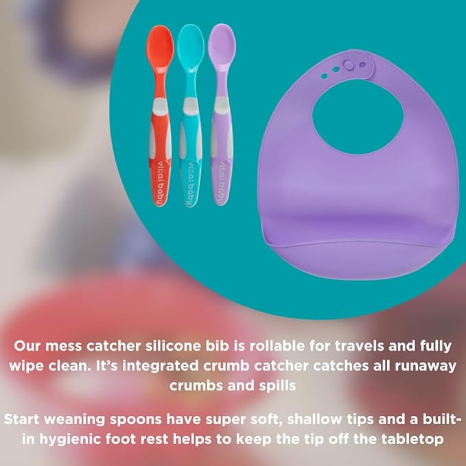 - Ease of Use: The components are top-rack dishwasher safe (max. 65°C) for convenience, and most parts (excluding the bib and start weaning spoons) are suitable for use in a microwave.