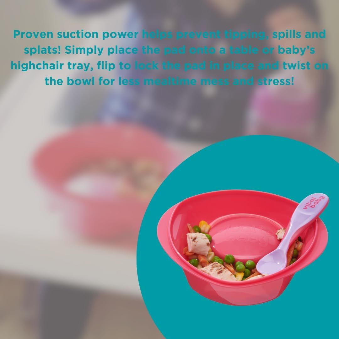 - LESS MESS: Super-strong suction base grips to surfaces such as plastic highchair trays and smooth tabletops to prevent slips & spills. No more flying plates and messy floors!