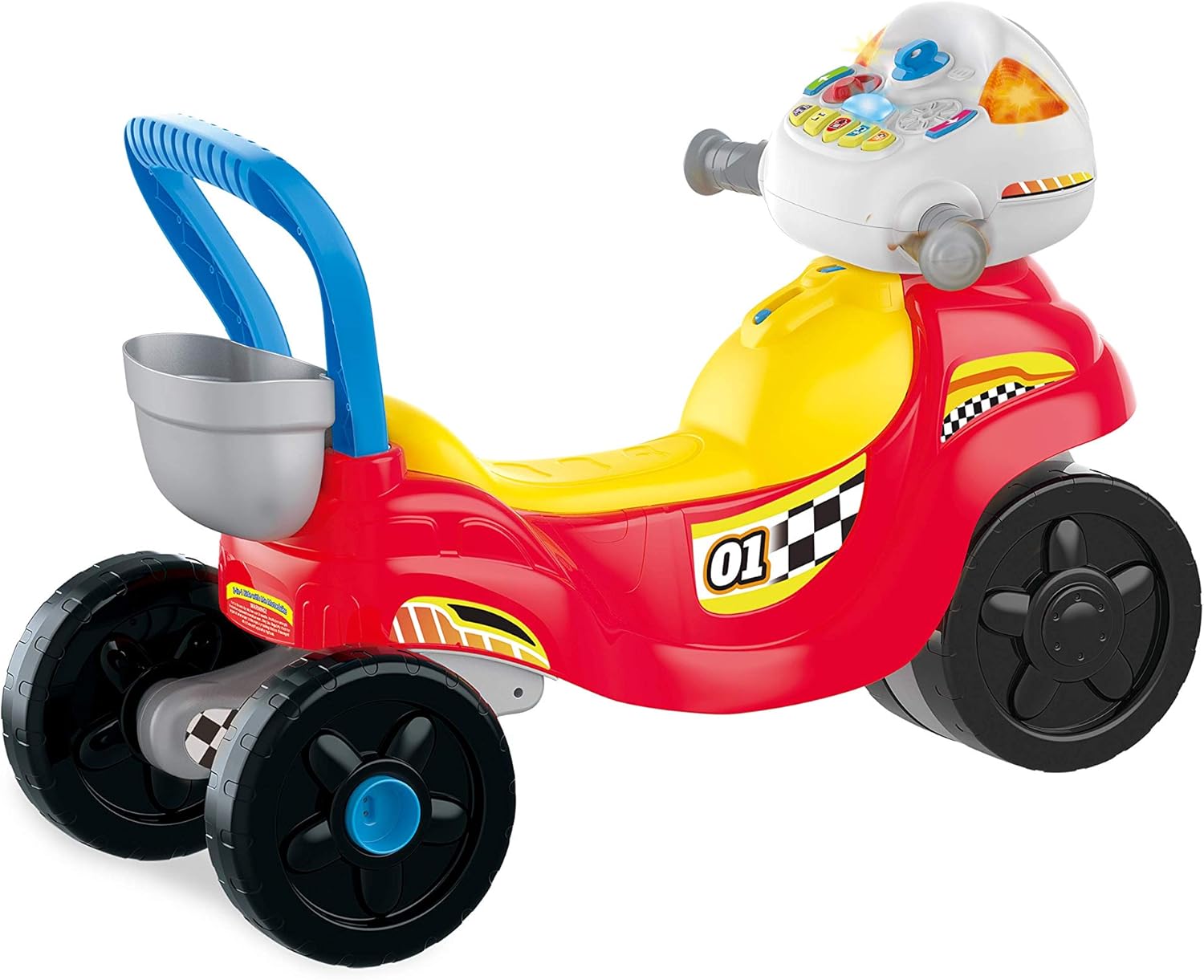 - RIDE WITH ME MOTORBIKE: Toddlers will love to get moving with this ride along toy designed to grow with your baby as they develop; Starting as a push walker and trike this toy converts into a two wheel ride-on balance bike great for older kids