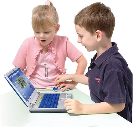 Slim laptop with 40 curriculum based activities teaching English, maths, music and basic French. Fun quiz show style game-play can be shared with friends in 2-player mode. Features a Progressive Learning System that cuts study into manageable stages and an on-screen progress report. Real mouse and Qwerty keyboard help develop essential early computer skills.