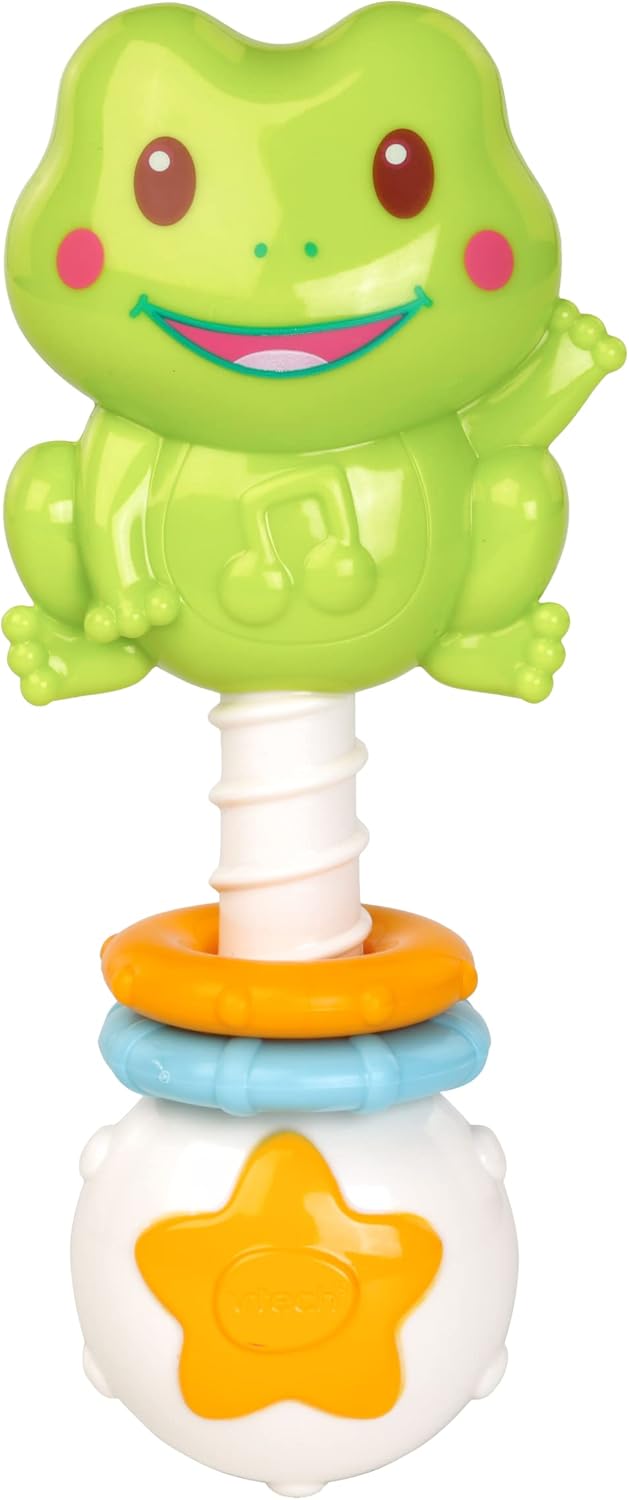 - BABY RATTLE: This pack of baby accessories also includes a fun frog rattle toy that has a little star on the handle and beads that produce a gentle rattle sound when shaken