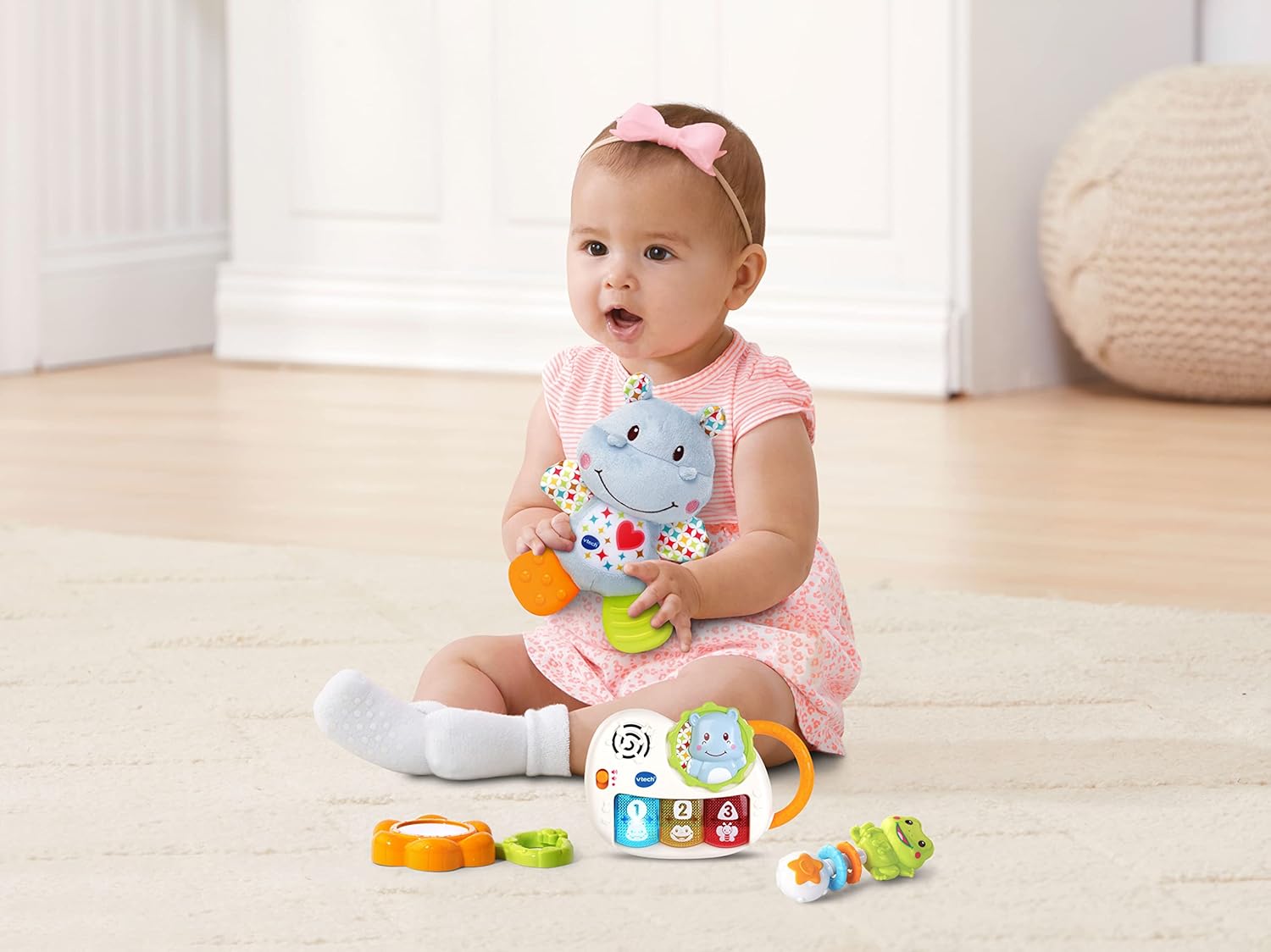 - BABY SENSORY TOY: In this pack you will find a cute cuddly teddy bear-like hippo with colourful patterns and crinkle sounds and a textured teether for babies designed for sensory play and soothing your baby’s gums