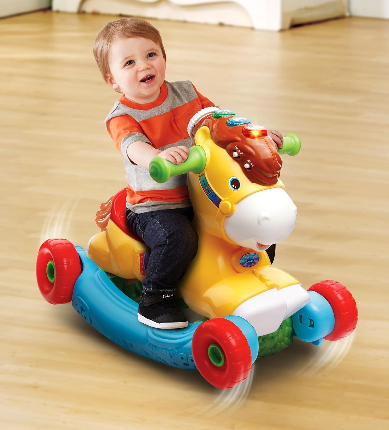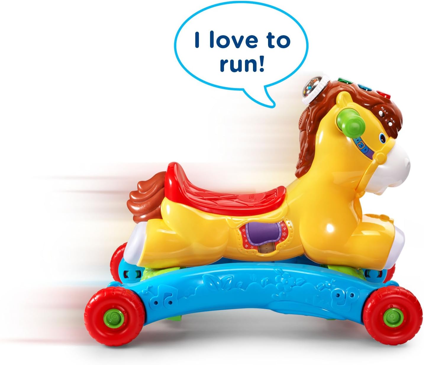 - Motionsensordetectsyourchild’smovementandencouragesthemtorockandride;hopinthesaddleandgoforarideontheGallopandRockLearningPonybyVTech